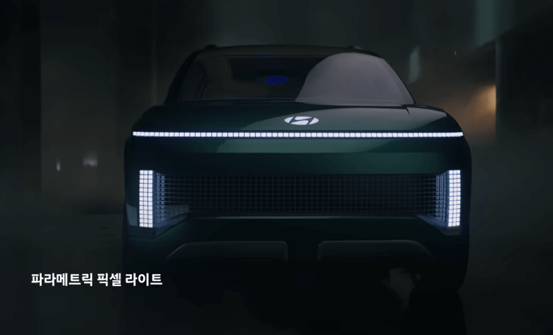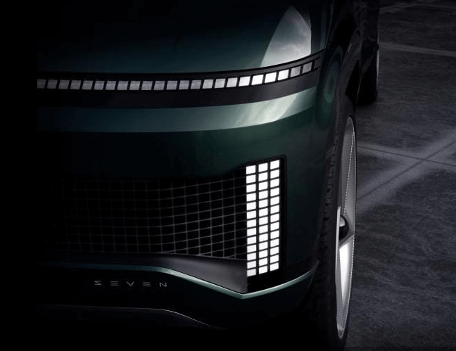 세로형의 전면 라이트 디자인이 비슷하지만, EV9 의 라이트가 곡선인 반면, 아이오닉7는 직사각형의 세로형 픽셀라이트가 심플한 느낌을 줍니다.
